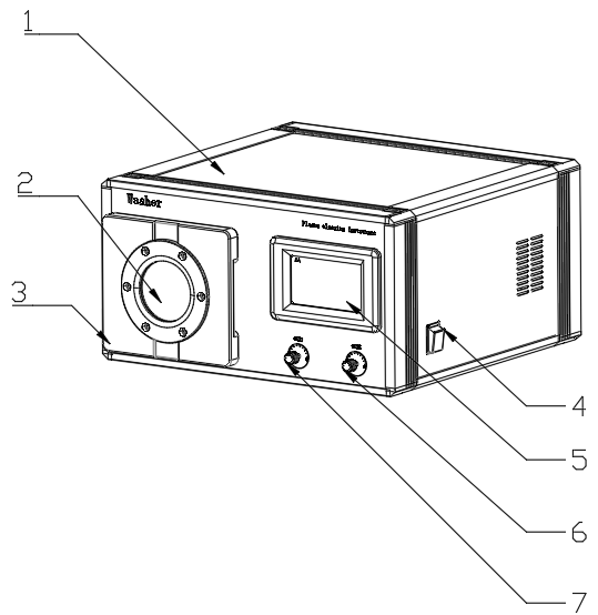 1—機箱;2—耐熱玻璃清洗艙;3—清洗艙門;4—總電源開關